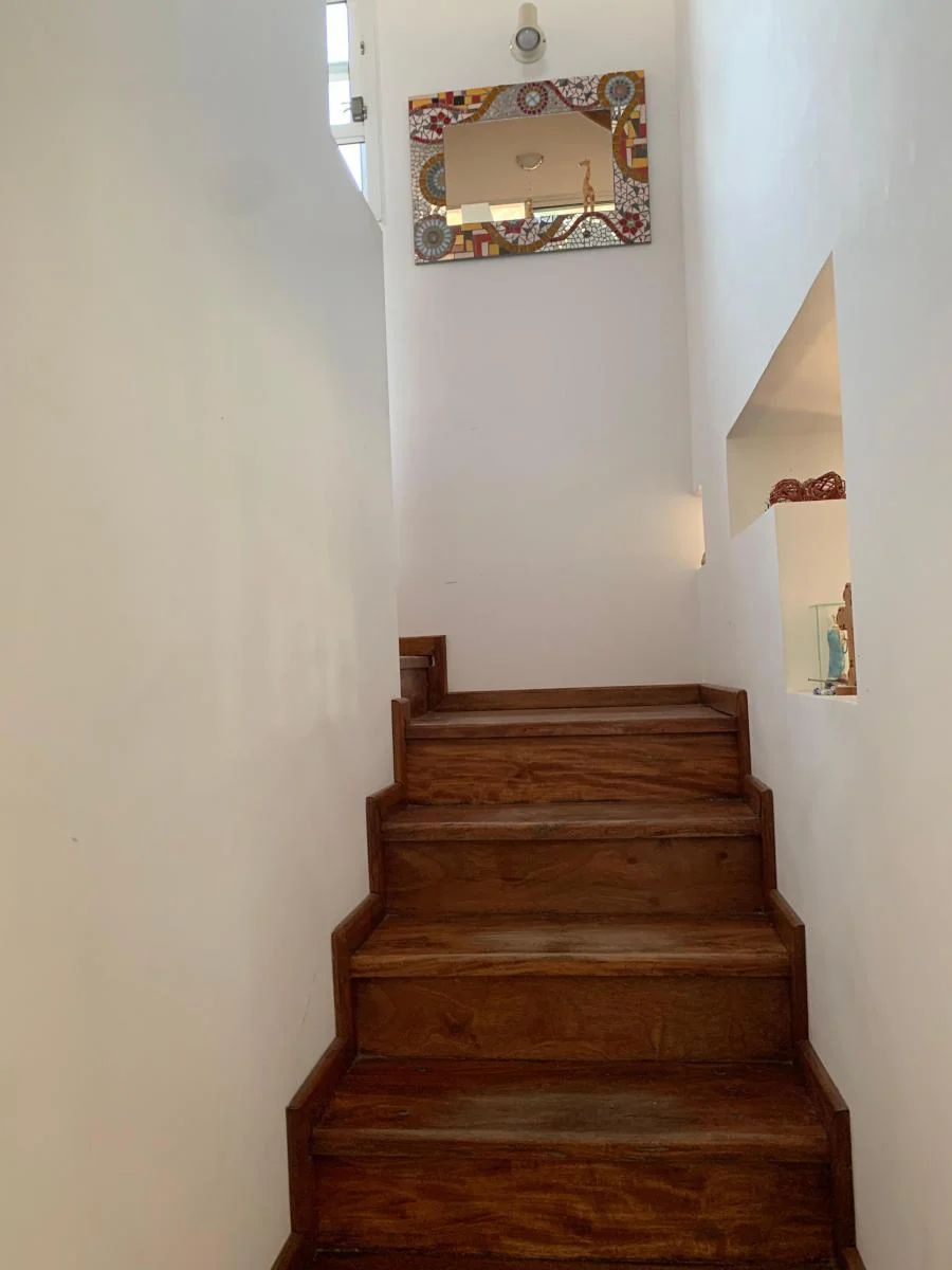 En la PB: living, comedor, baño completo, cocina con barra, lavadero, galería y cochera semicubierta, jardin parquizado, parrilla.