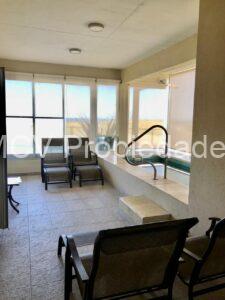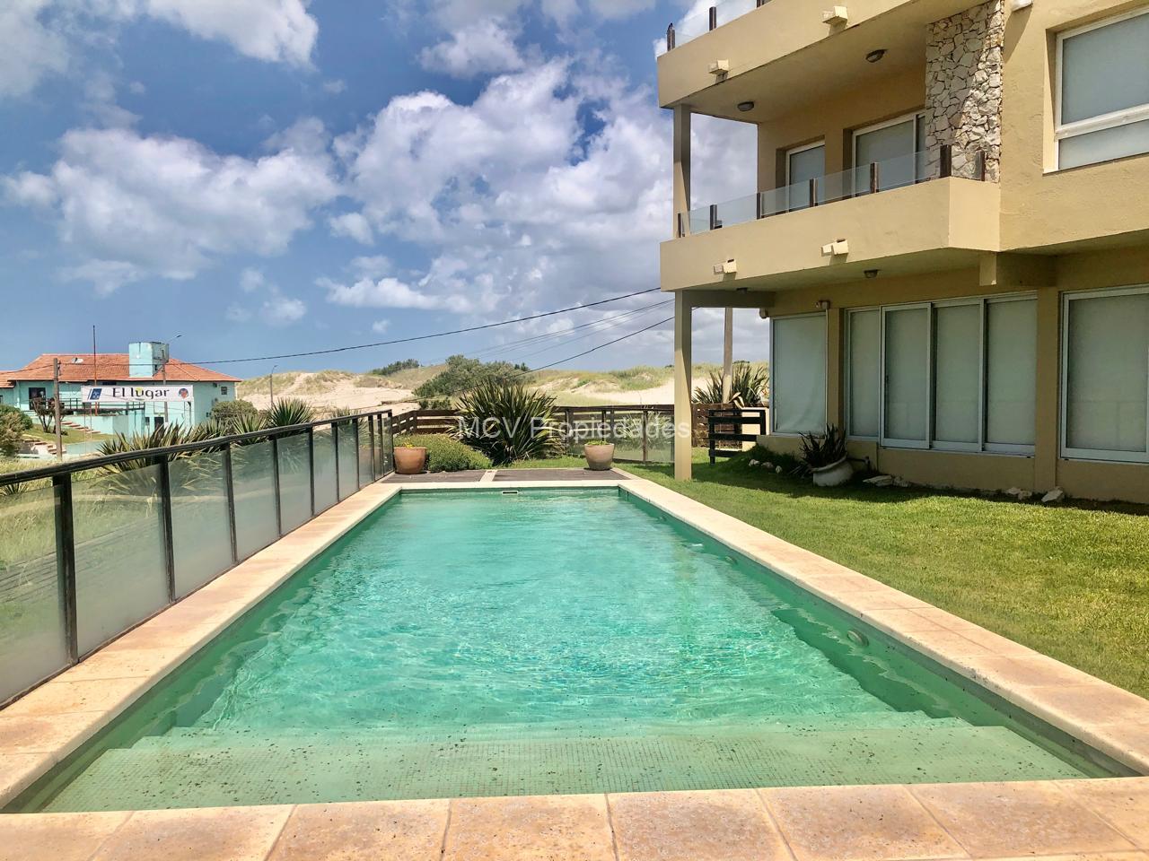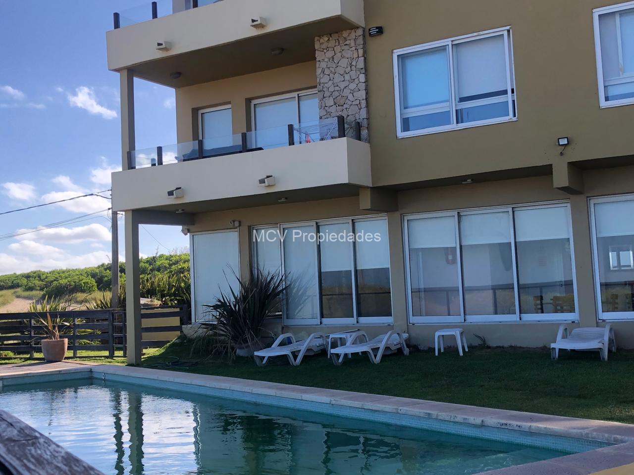 - El Complejo dispone de 10 unidades (departamentos) de aproximadamente 56 Mts2 cada uno con cocheras individuales y un monoambiente de 28 Mts2 todos con absoluta privacidad y completamente equipados, con excelentes vistas (4 con vista total al mar y 6 con vista al mar lateral), contando además con Solarium, Spa, SUM con bar tb con vista al mar, y Piscina descubierta climatizada frente al mar con salida directa a la playa.