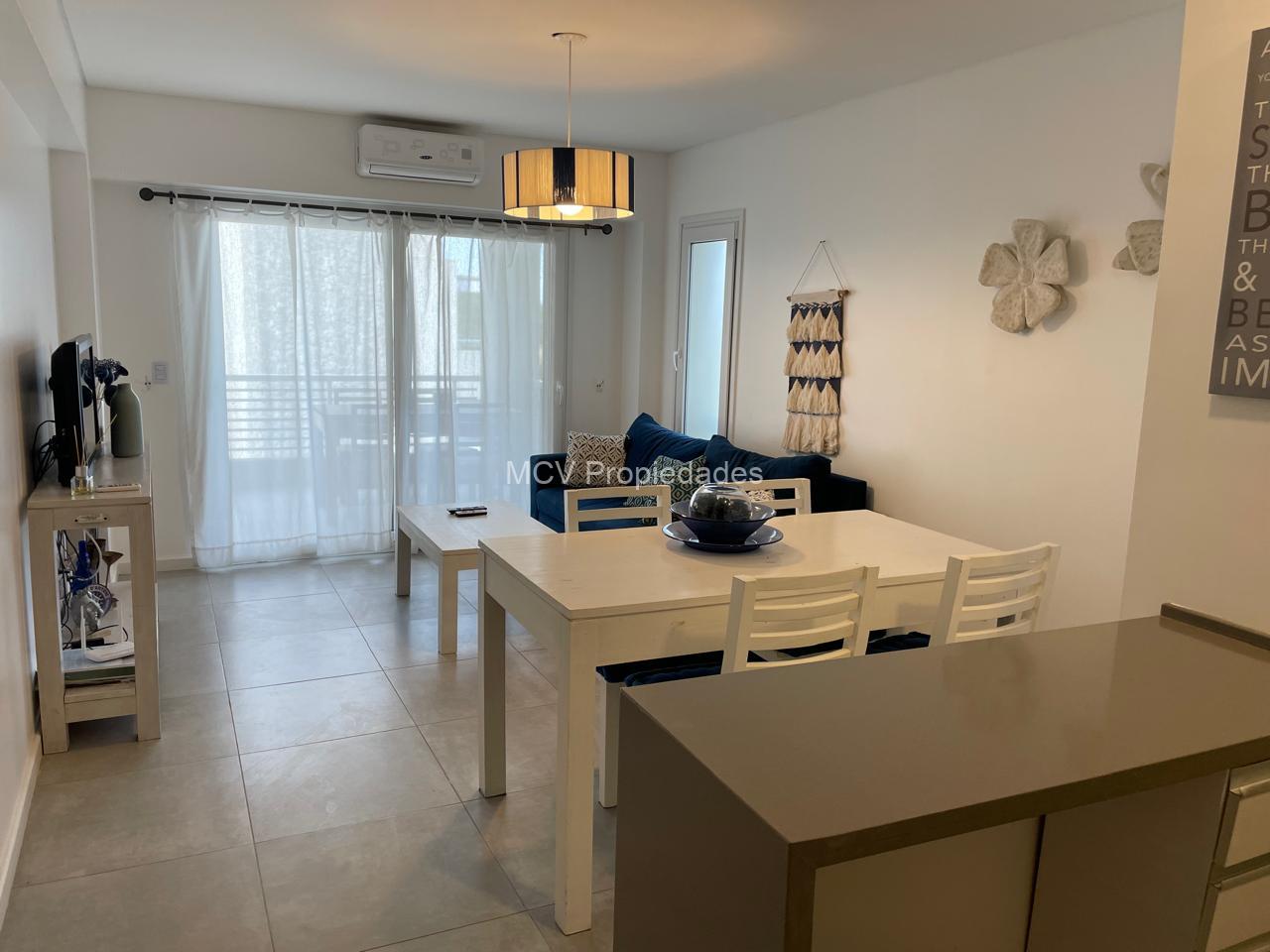 DEPTO de 2 ambientes, 51 mts2 cubiertos y 13 mts2 semicub, 1 dorm, 1 baño, AA en el living, calefacción por losa radiante, 2 teles, balcón c/parrilla; con cochera cubierta; derecho al uso de las instalaciones - pileta In-Out; Laundry.