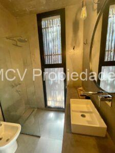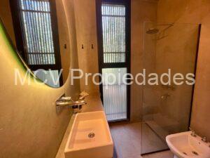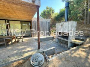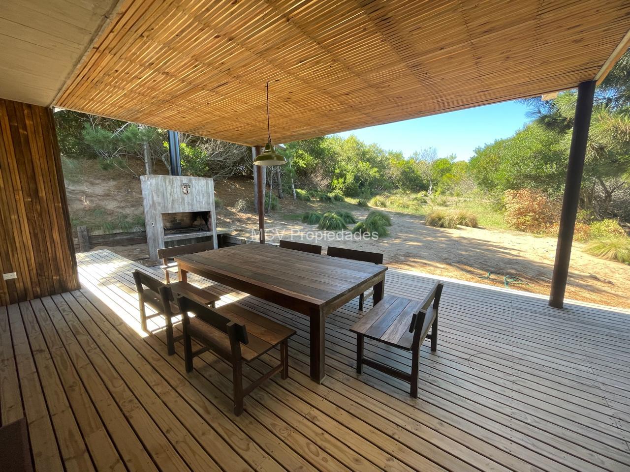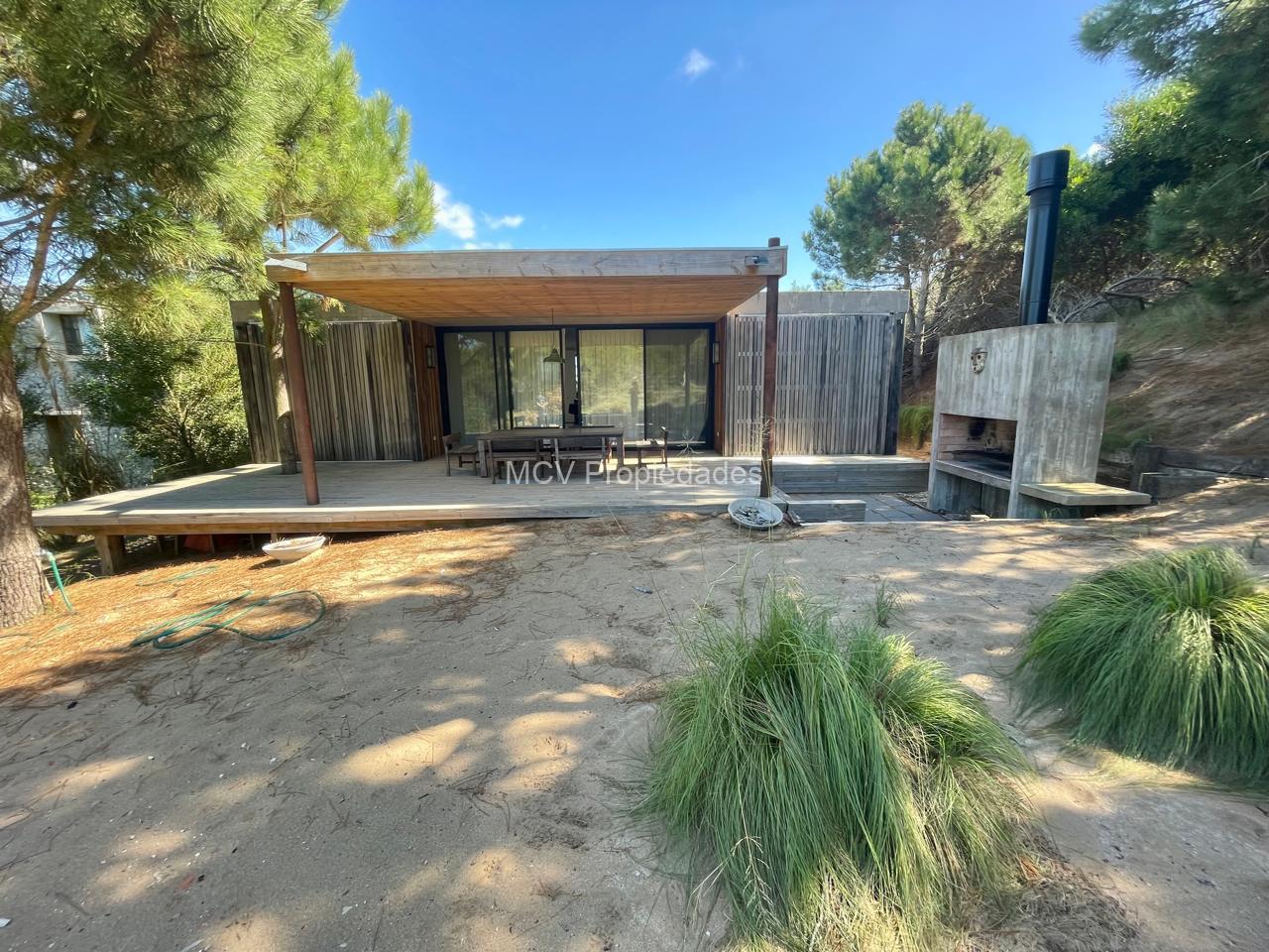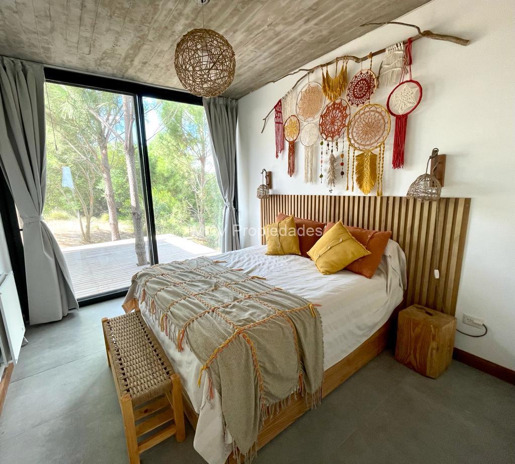 Casa super-moderna desarrollada en una planta, living con salamandra, cocina con barra integrados, 4 dormitorios en suite, calefacción por AA y placas ceramicas, 1 tele, mosquiteros. Galería con parrilla.