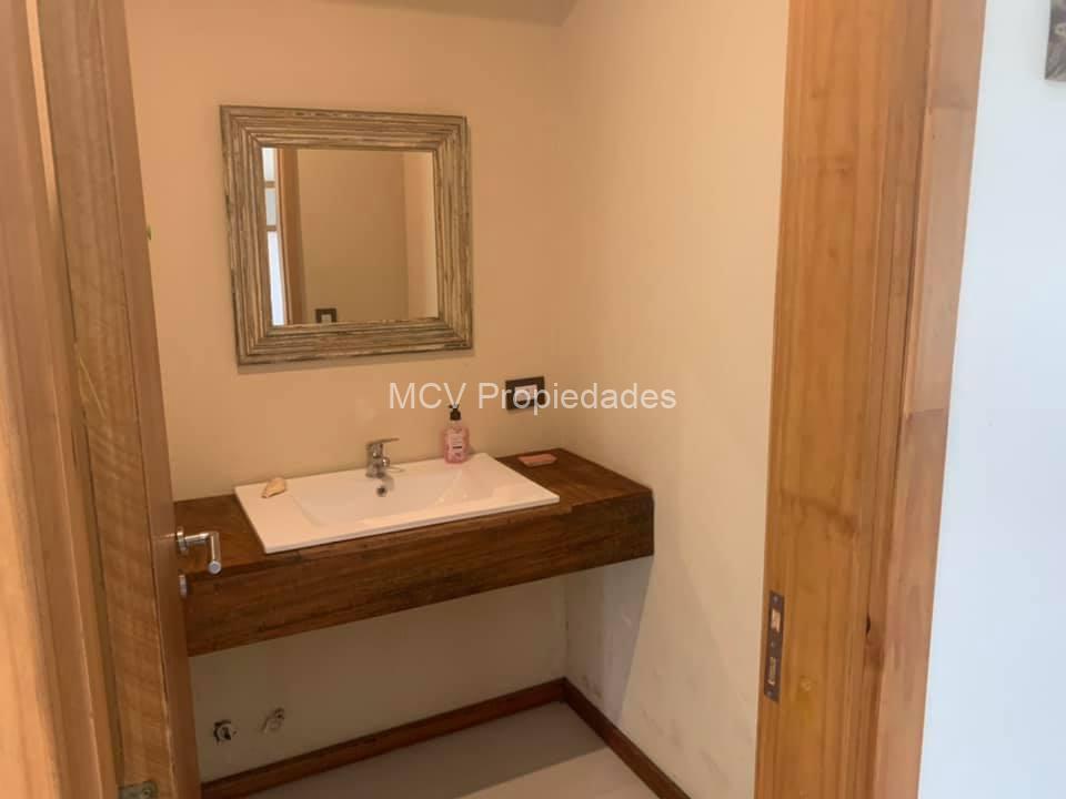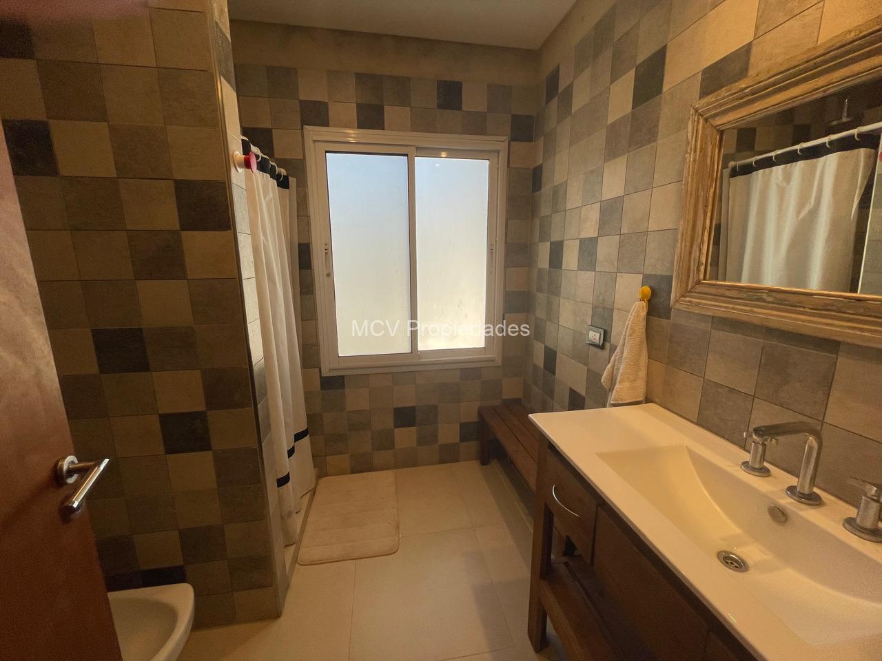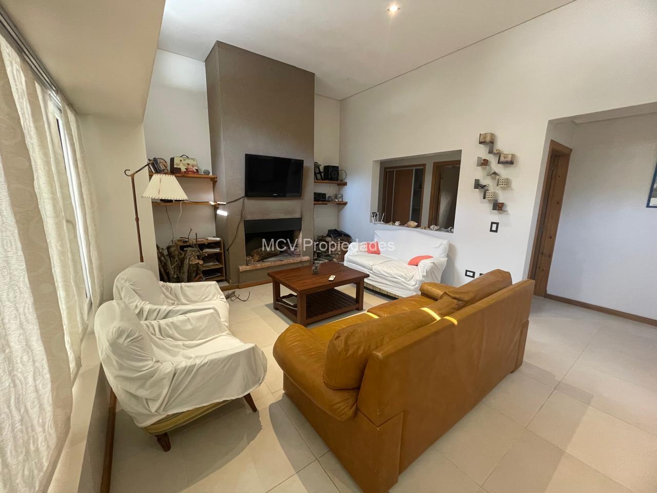 Hall de entrada al living con hogar, comedor y cocina con barra integrados con amplios ventanales, 3 dorm mas dependencia, uno de ellos en suite, 3 baños completos, 1 toilette,y lavadero.