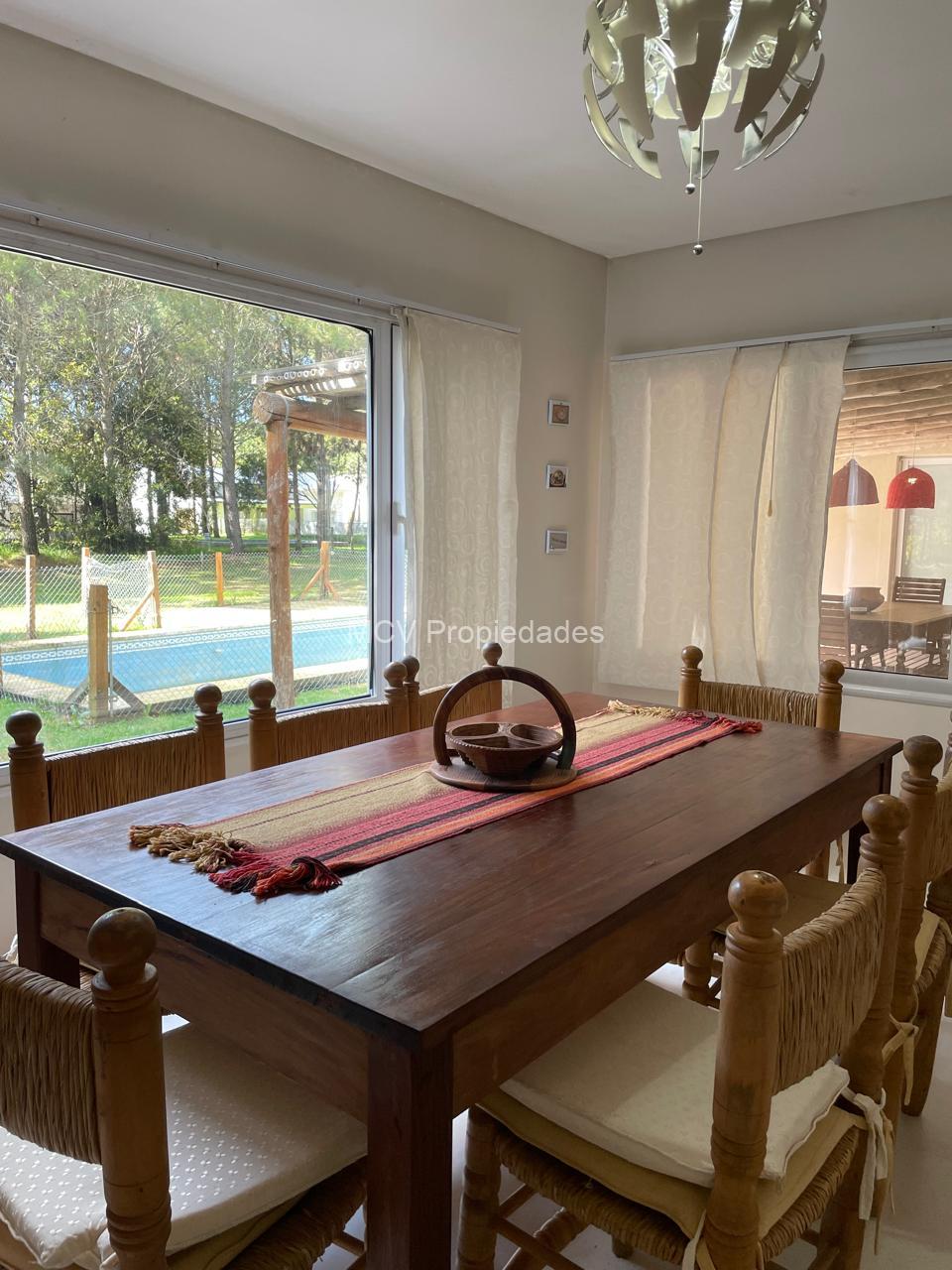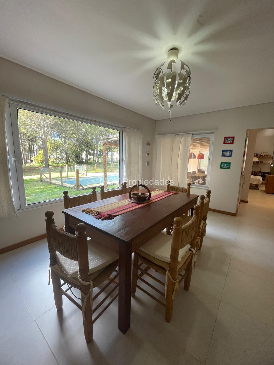 Casa desarrollada en una planta estilo campo -para 6/7 +2 pax, amplia y funcional, con pileta cercada sobre lote arbolado. Excelente ubicación central.