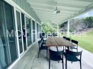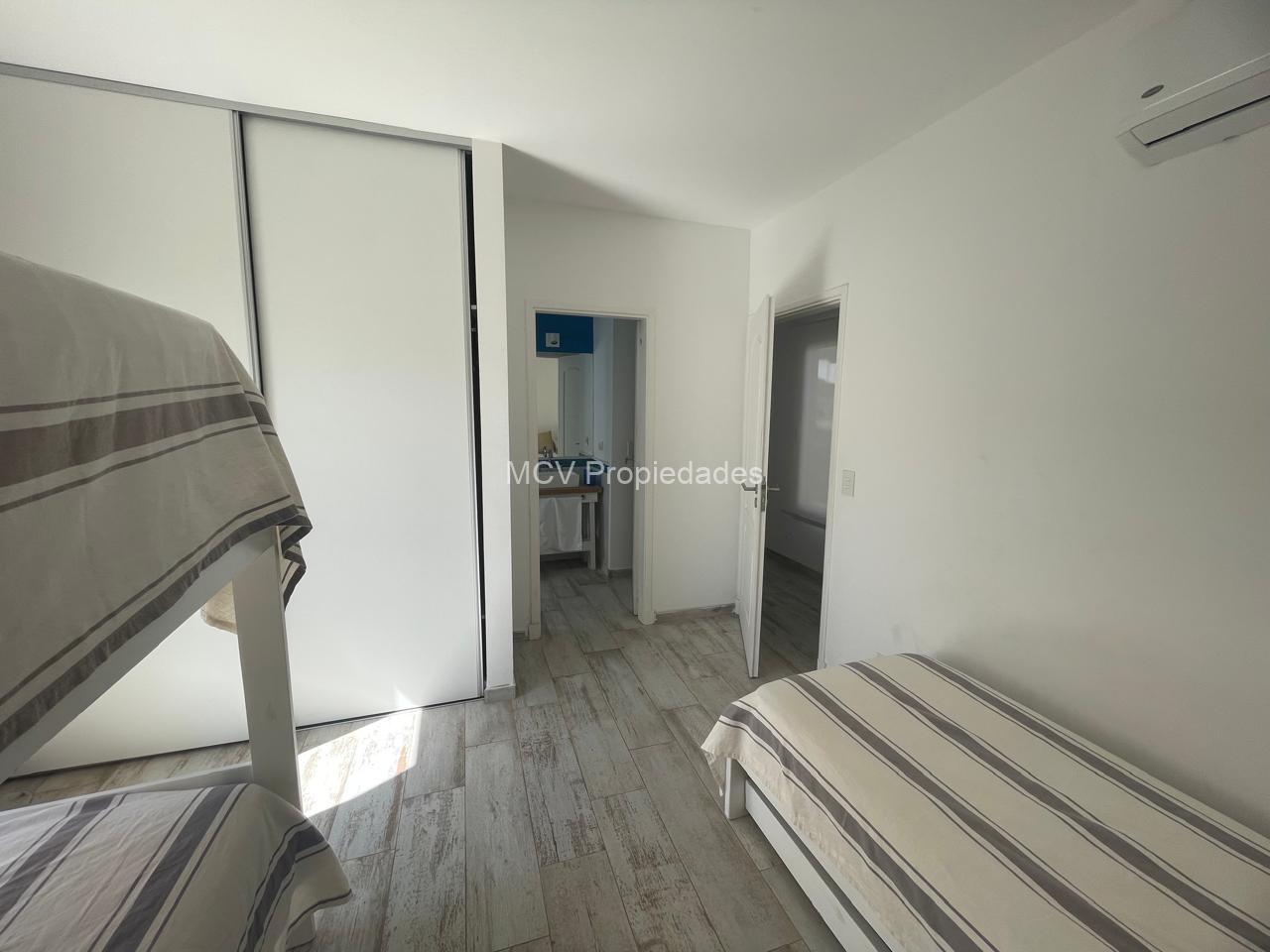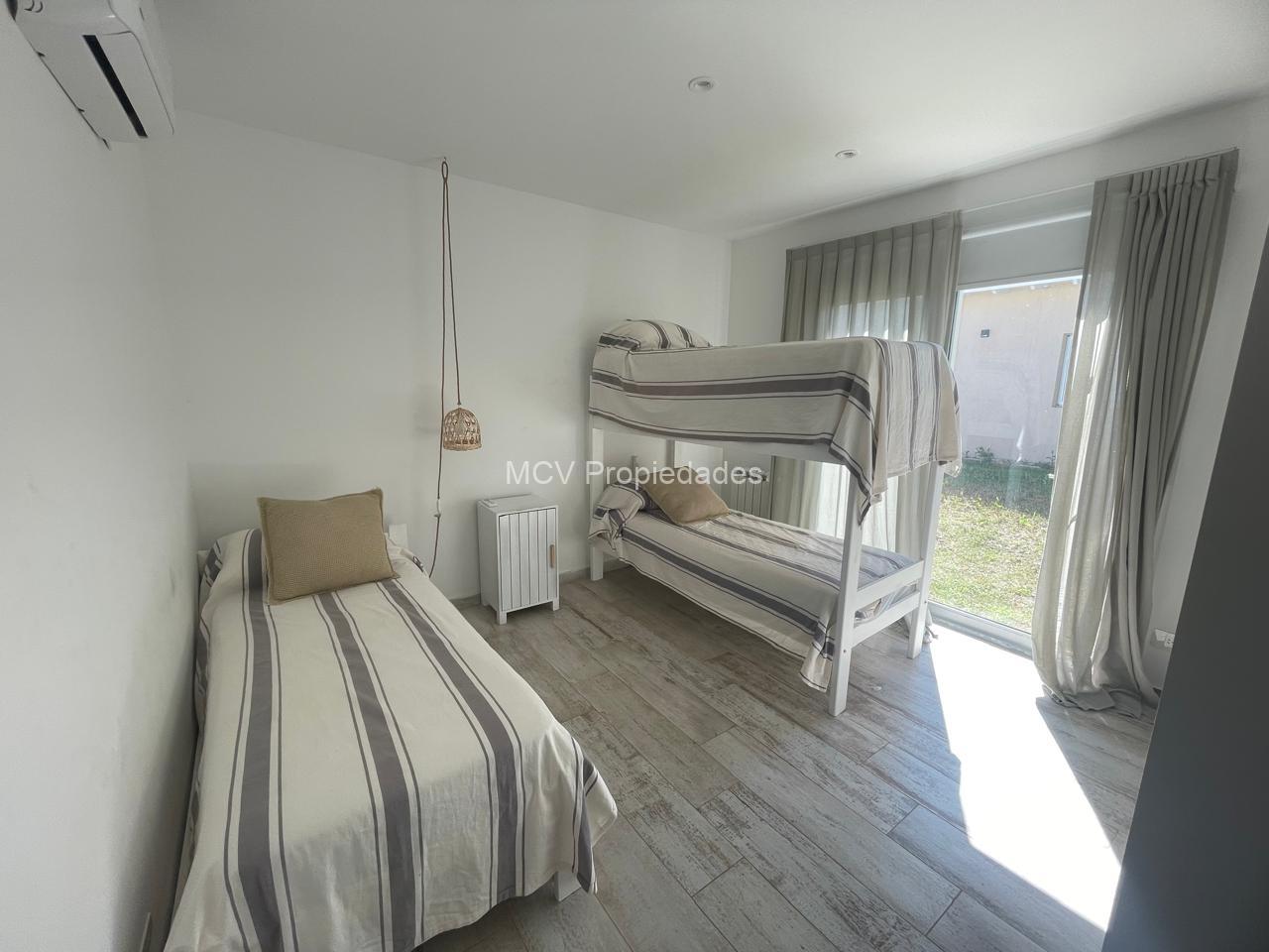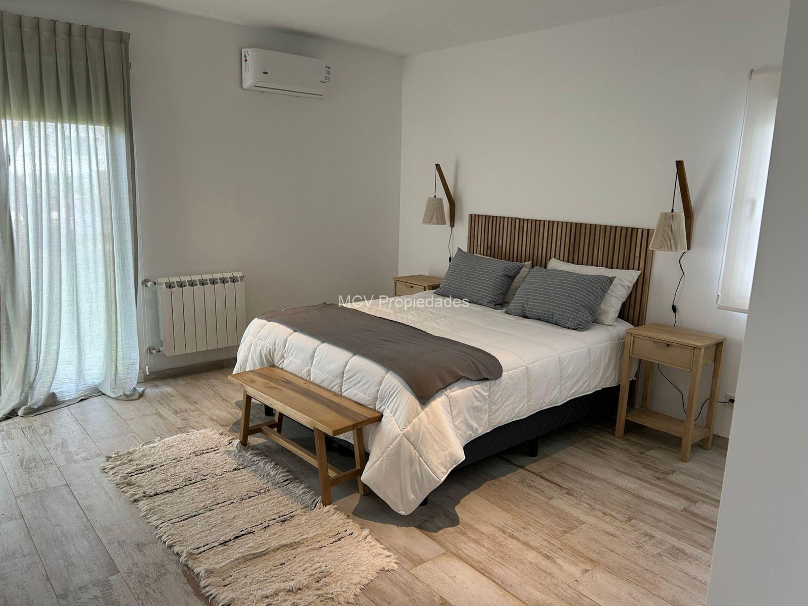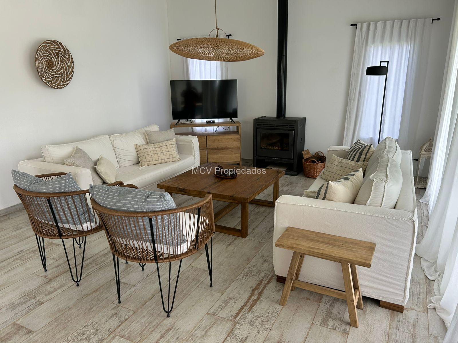 Casa moderna y fresca desarrollada en una planta. Amplio y luminoso living con salamandra,-comedor y cocina con isla integrados, 3 dormitorios en suite (uno de los baños tiene doble entrada. AA en todos los ambientes, lavavajillas, WIFI, 2 teles. Lavadero.