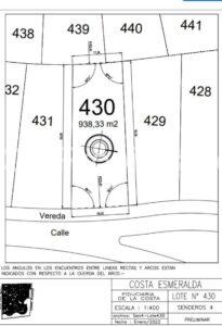 SENDEROS IV 430 - lote en Venta, ubicación sobre boulevard central, con 938 mts2, 20 mts de frente, 17 de fondo x 50 de largo. Parcialmente arbolado.